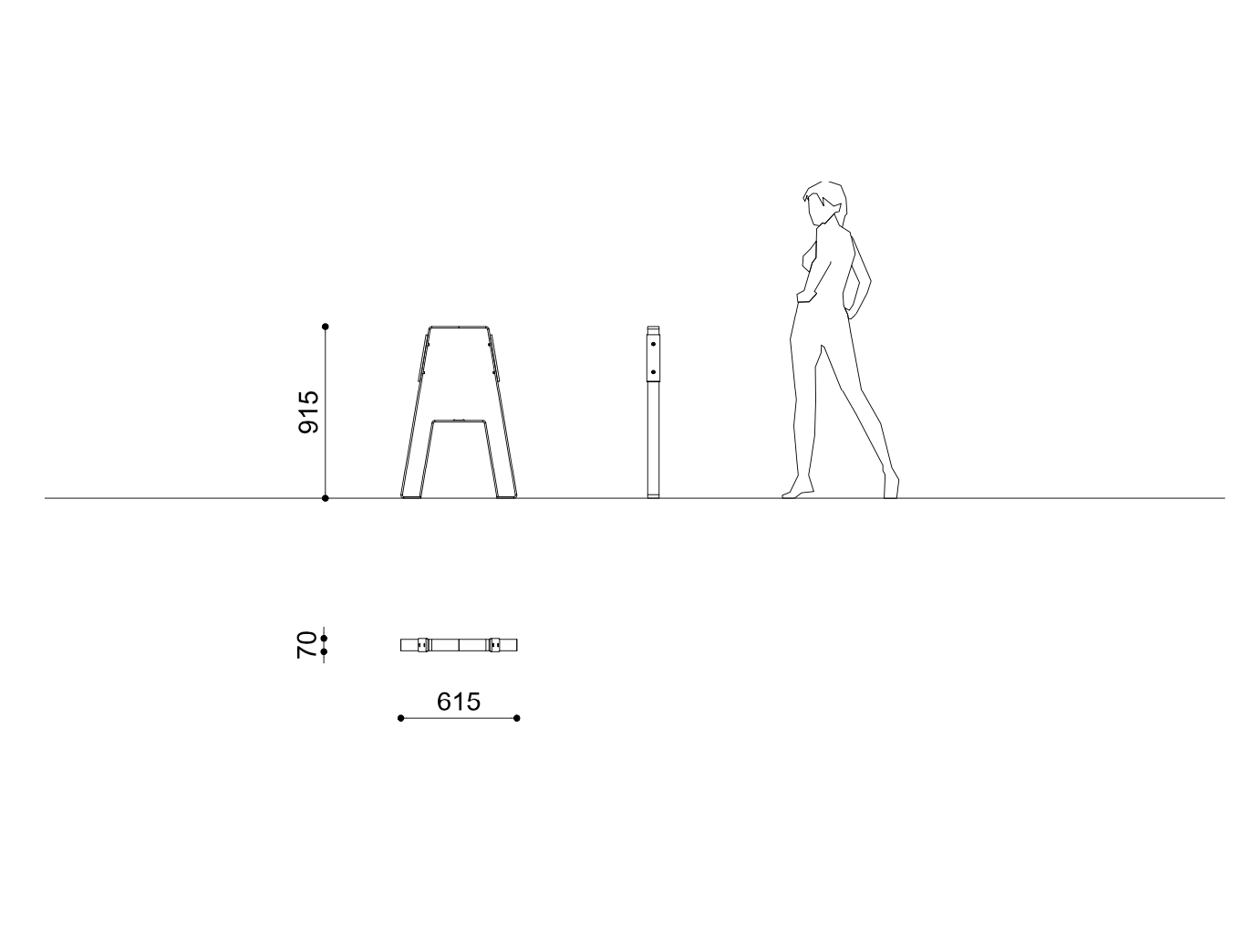 El Aparcabicicletas WIP está fabricado en planchas de acero de alta calidad con forma poligonal de aristas suavizadas, lo que le otorga un diseño robusto y seguro, a la vez que elegante.
