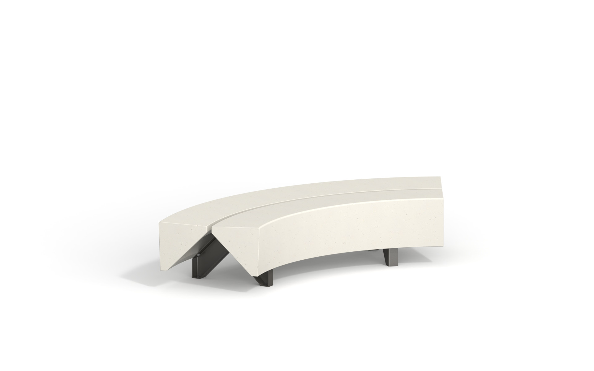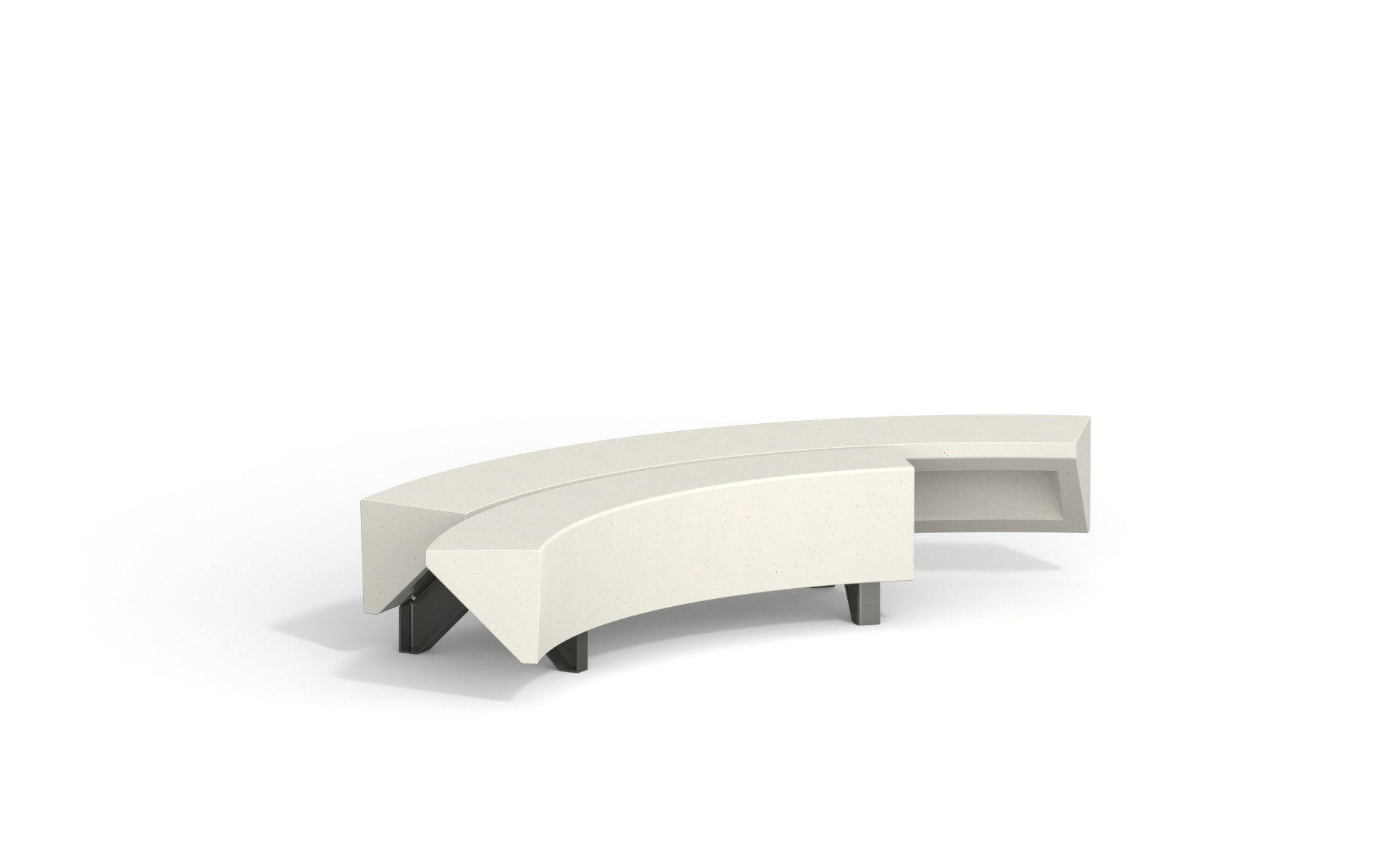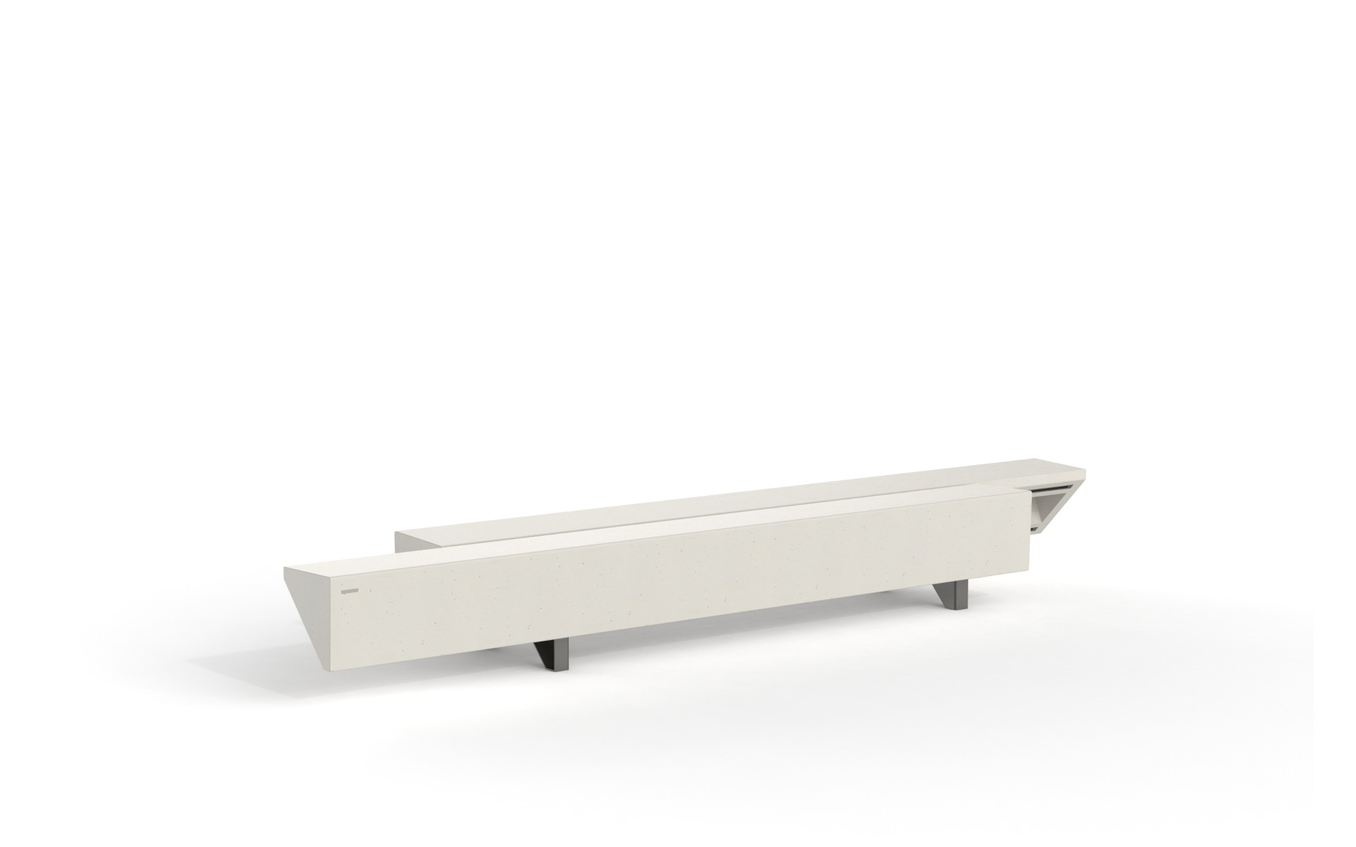 Listones de asiento con sección triangular, fabricados en HPC (High Performance Concrete) con acabado velluto liso a cassero, que aportan elegancia y durabilidad.