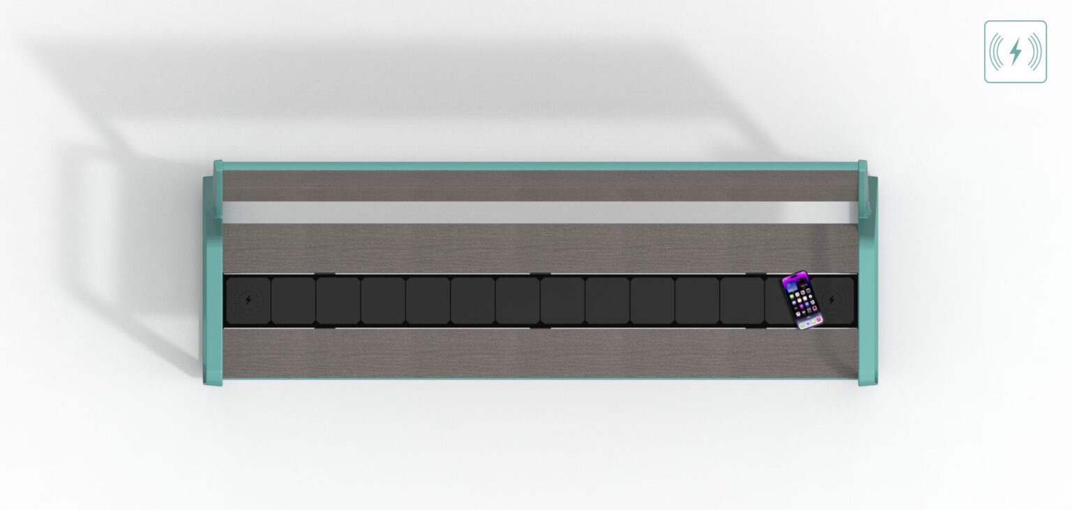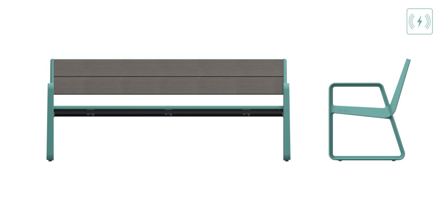 Una de las grandes innovaciones de este modelo es su lama central de aluminio extrusionado equipada con un panel solar de 48 W y baterías de 20 Ah, que permiten el almacenamiento de energía renovable para alimentar el sistema de iluminación LED incorporado. Además, el banco dispone de dos cargadores por inducción Fast Charging, ideales para que los usuarios puedan cargar sus dispositivos móviles cómodamente mientras descansan.