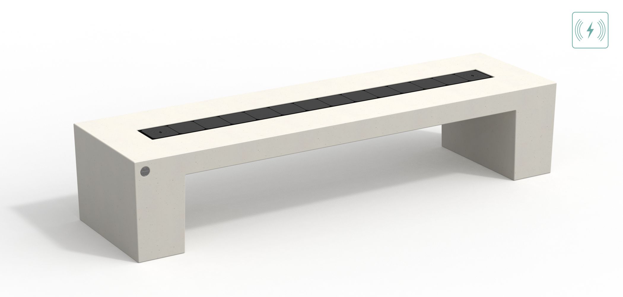 El banco destaca especialmente por su integración de tecnología solar. En el centro del asiento se incorpora una tabla de aluminio extrusionado equipada con un panel solar de 48 W y baterías de 20 Ah, lo que permite almacenar energía de forma limpia y sostenible. Esta energía se utiliza para alimentar dos cargadores por inducción (Fast Charging), ideales para la carga rápida de dispositivos móviles, y un sistema de iluminación LED que mejora la visibilidad y seguridad en entornos nocturnos.