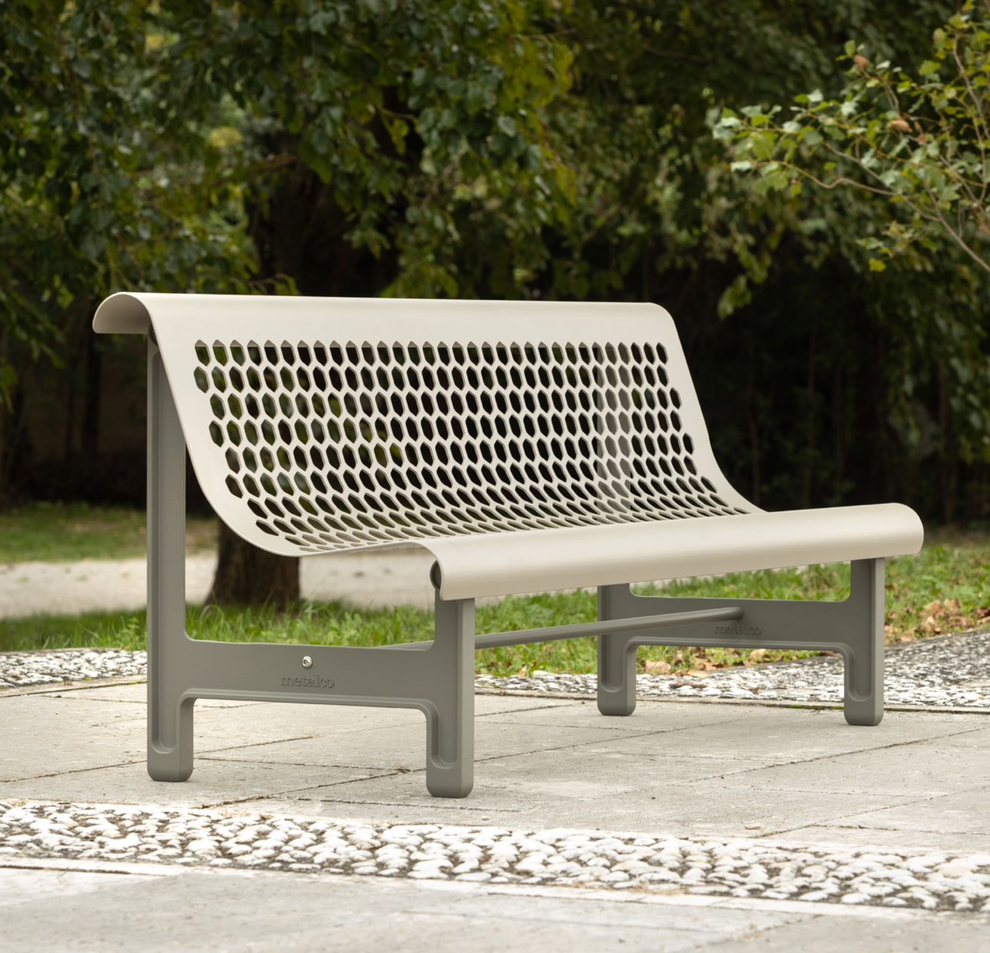 Este banco puede integrarse fácilmente en proyectos que incluyan jardineras metálicas, marquesinas urbanas modernas o aparcabicicletas de acero, permitiendo crear conjuntos coordinados y funcionales en plazas, avenidas o zonas verdes.