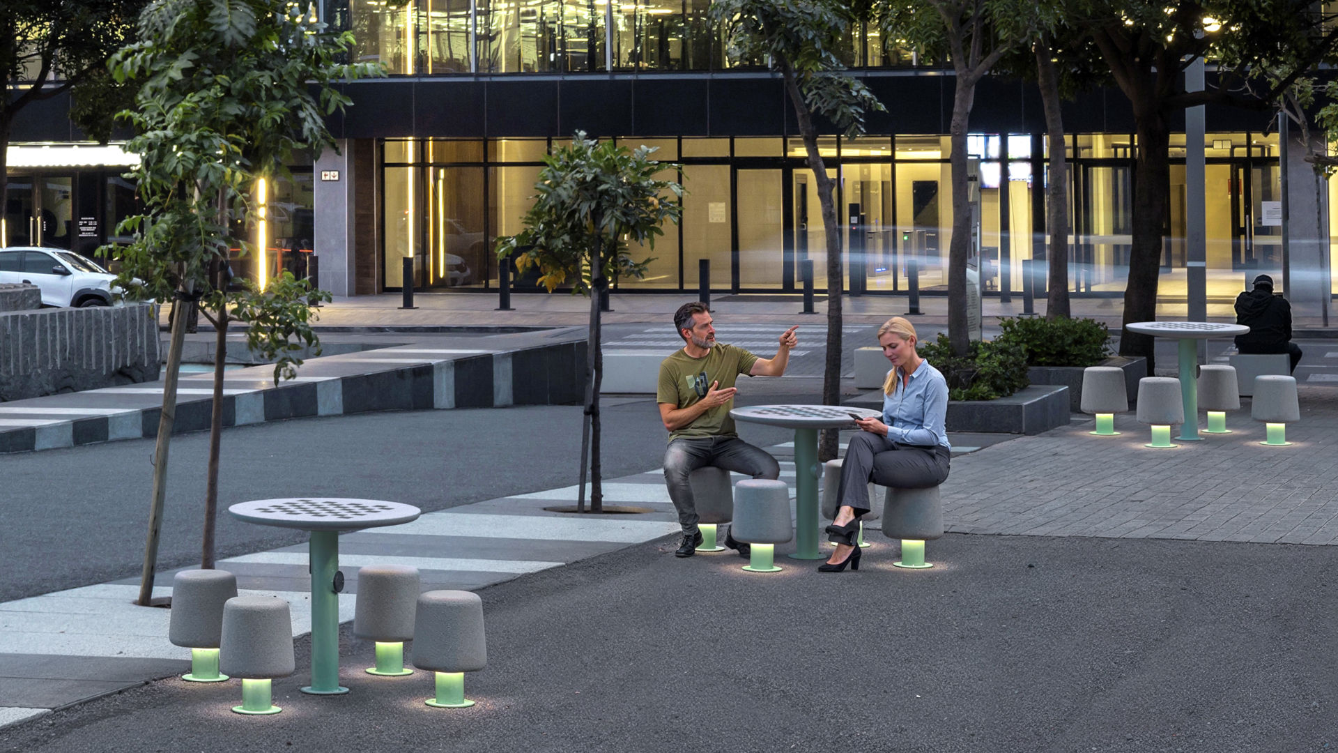 Mesas y asientos urbanos en HPC y acero de gran resistencia