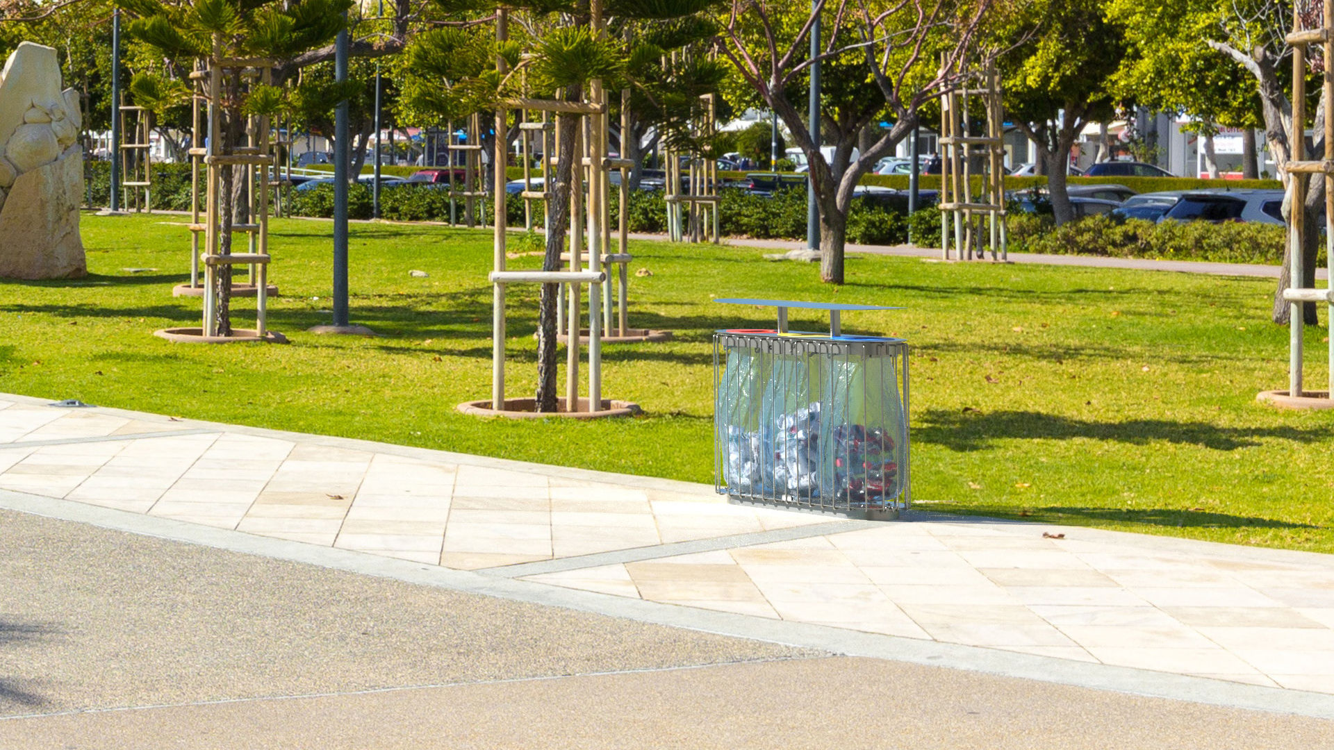 Gracias a su diseño robusto y modular, la papelera se adapta a parques, zonas peatonales, áreas comerciales o entornos institucionales, integrándose fácilmente con otros elementos de mobiliario como bancos urbanos, marquesinas de acero y cristal o aparcamientos para bicicletas.