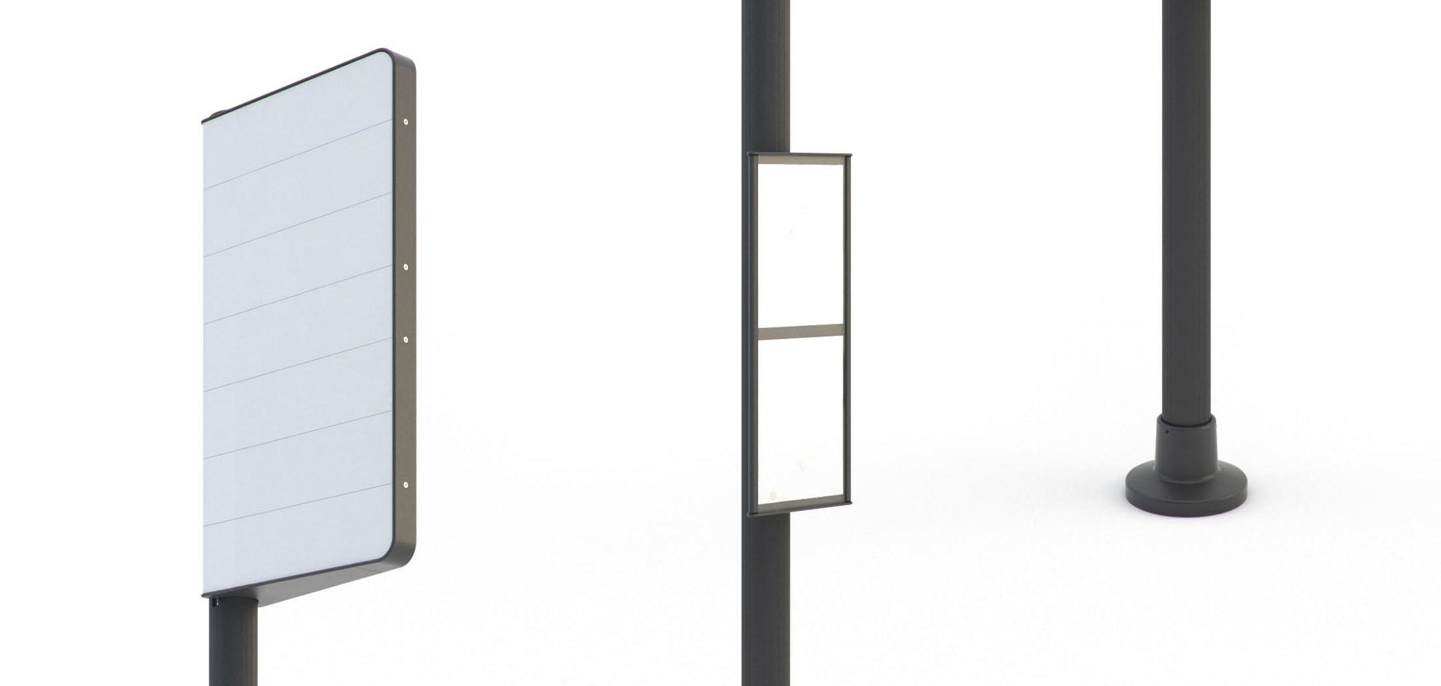 Disponible en versiones con uno, dos, tres o cuatro tableros, el Poste BARDO permite adaptar su capacidad según las necesidades del entorno o del proyecto. Todos los tableros están protegidos con una chapa de policarbonato transparente, que garantiza la visibilidad de la información y la protege frente a condiciones climáticas adversas, rayaduras o actos vandálicos.